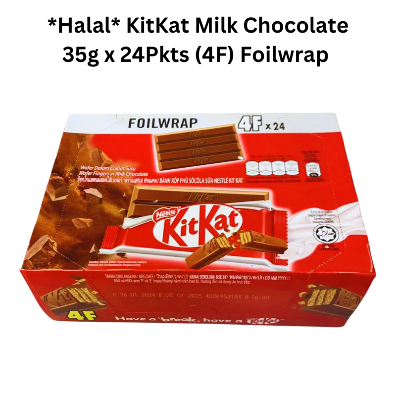 KITKAT WAFER FINGER IN MILK CHOCOLATE 1BOX: 4F 35GX24PCS šŸ“¦READY STOCKšŸ“¦ ⚔FAST SHIPPING⚔ **Halal Certificated** All ready stock and fast delivery. šŸ“SHIP FROM SELANGORšŸ“ Very yummy, suitable for kids, can use...