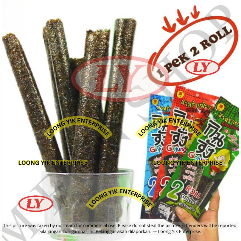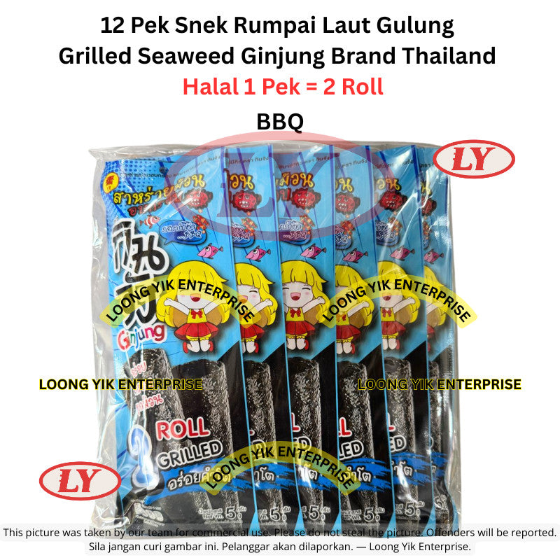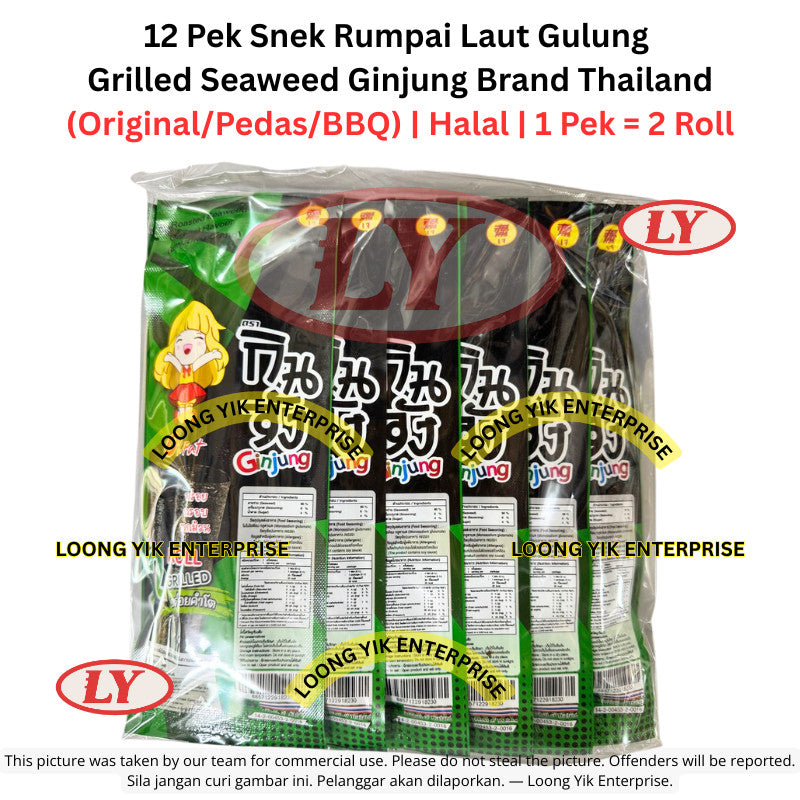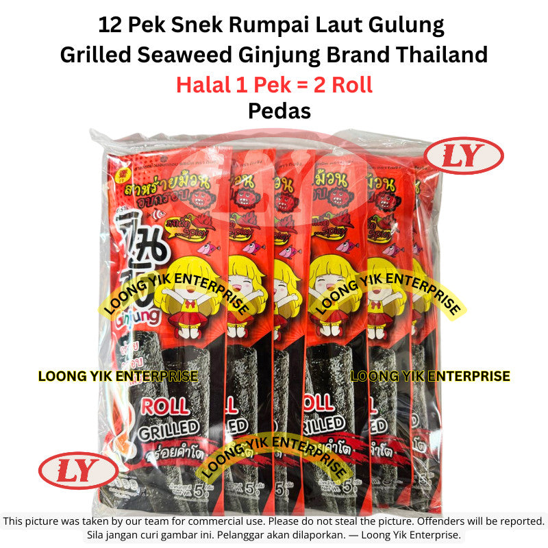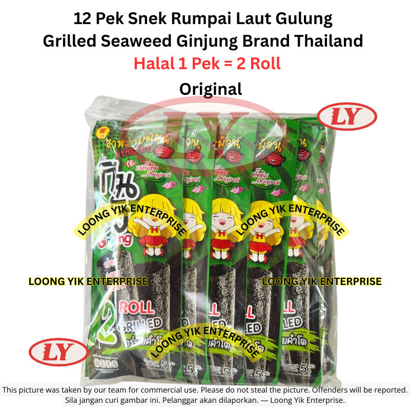 12 Pek Snek Rumpai Laut Gulung / Grilled Seaweed Ginjung Brand Thailand (Original / Pedas / BBQ)